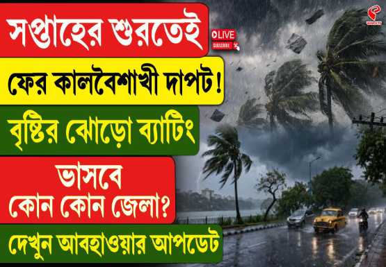 রবিবার থেকেই কলকাতা-সহ দক্ষিণবঙ্গের কিছু এলাকায় বিক্ষিপ্ত হালকা বৃষ্টি শুরু হতে পারে। তবে ঝড়ের মূল দাপট দেখা যাবে মঙ্গলবার থেকে। কলকাতায় মঙ্গলবার থেকে শুক্রবার পর্যন্ত বজ্রবিদ্যুৎ-সহ বৃষ্টির সতর্কতা জারি হয়েছে। এই সময় ঝোড়ো হাওয়া বইতে পারে ঘণ্টায় ৩০ থেকে ৫০ কিলোমিটার বেগে। আবহাওয়াবিদদের মতে, বুধবার ও বৃহস্পতিবার ঝড়ের তীব্রতা সবচেয়ে বেশি থাকতে পারে।