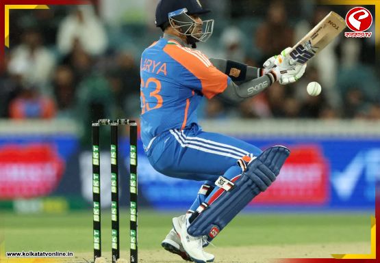 এরপর বৃষ্টি এসে ম্যাচ থামিয়ে দেয়। খেলা পুনরায় শুরু হলে সূর্য সেট হতে কিছুক্ষণ সময় নেন, তারপর ন্যাথান এলিসকে টার্গেট করেন। দশম ওভারে টানা দু’টি চার ও একটি ছক্কা হাঁকিয়ে ফের মাঠ মাতান তিনি।