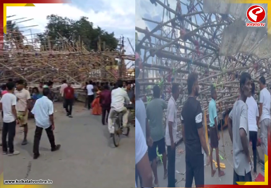 এদিন দুপুরের পর থেকে আবহাওয়ার বদল ঘটতে শুরু করে। ঝোড়ো হাওয়ার পাশাপাশি বৃষ্টি চলতে থাকে। সূত্রের খবর, এবারের পুজোয় দর্শনার্থীদের বড় চমক দিতে প্রায় ৭০ ফুটের পুজো মণ্ডপ তৈরি করেছিল কানাইলাল পল্লী। মণ্ডপের সামনে ফাইবারের জগদ্ধাত্রী তৈরি করা হয়েছিল। কিন্তু খুব বেশি উচ্চতা হওয়ায় হালকা হাওয়াতেই সবটাই উল্টে যায়। রীতিমতো শোরগোল পড়ে যায় এলাকায়।সূত্রের খবর, যে সময় এ ঘটনা ঘটে সেই সময় বেশ কিছু দর্শনার্থী ছিলেন মণ্ডপের ভিতরে। মুহূর্তেই জানা যায় দু’জন আহত হয়েছেন। পরবর্তীতে আরও বেশ কয়েকজনের আহত হওয়ার খবর মেলে। উদ্ধার কাজে হাত লাগান ক্লাবের সদস্যরাও। খবর পেয়ে পুলিশ আধিকারীকরা ঘটনাস্থলে পৌঁছান।